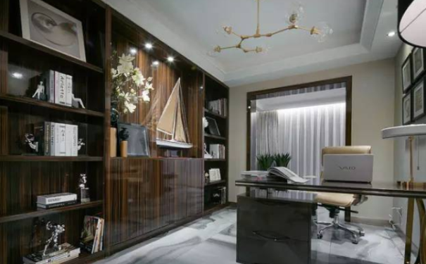 书房需要很安静,因此,在选择区域时,书房的好选择是里面的房间,因为在房子里面些设书房更安静,这意味着书房更深入,所以感觉它是在一个安静的地方,在装饰书房时,不要有容易发出噪音的物体,如一些风铃。建议不要把它们放在书房里,在城市的房子里,书房的窗户需要关闭,以阻挡窗外道路或其他地方的噪音。