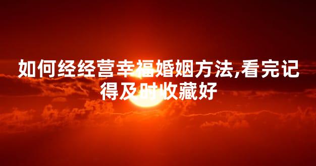 如何经经营幸福婚姻方法,看完记得及时收藏好